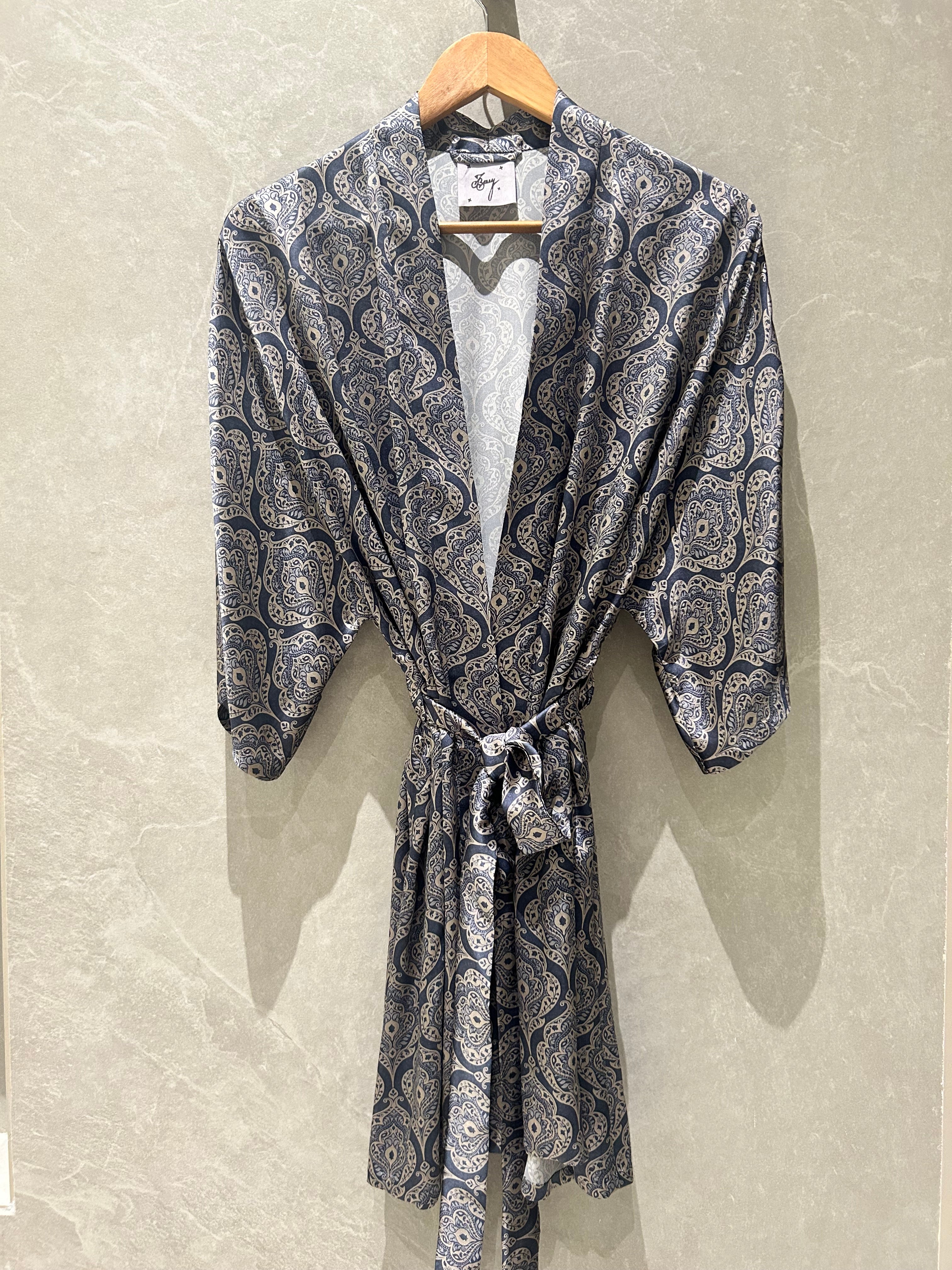 Short Silk Robe in Nilambri print