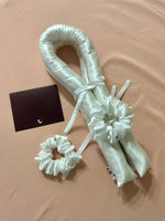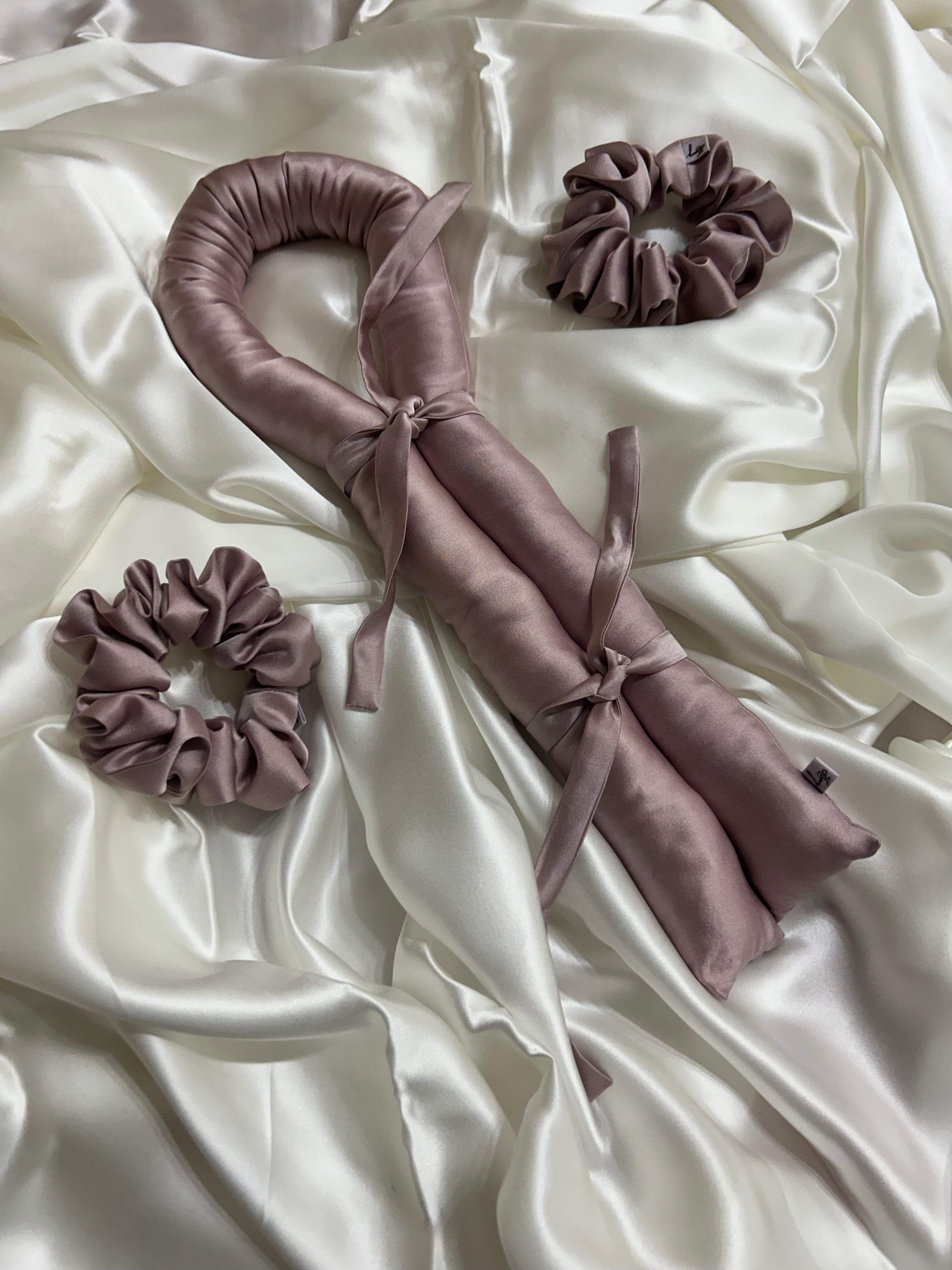 Introducing the T.Berry Heatless Hair Curling Silk Set. Artisanally handcrafted in-house from our ultra-luxurious, organically produced and fair-trade certified ahimsa peace silk and fair-trade, premium organic cotton fill.