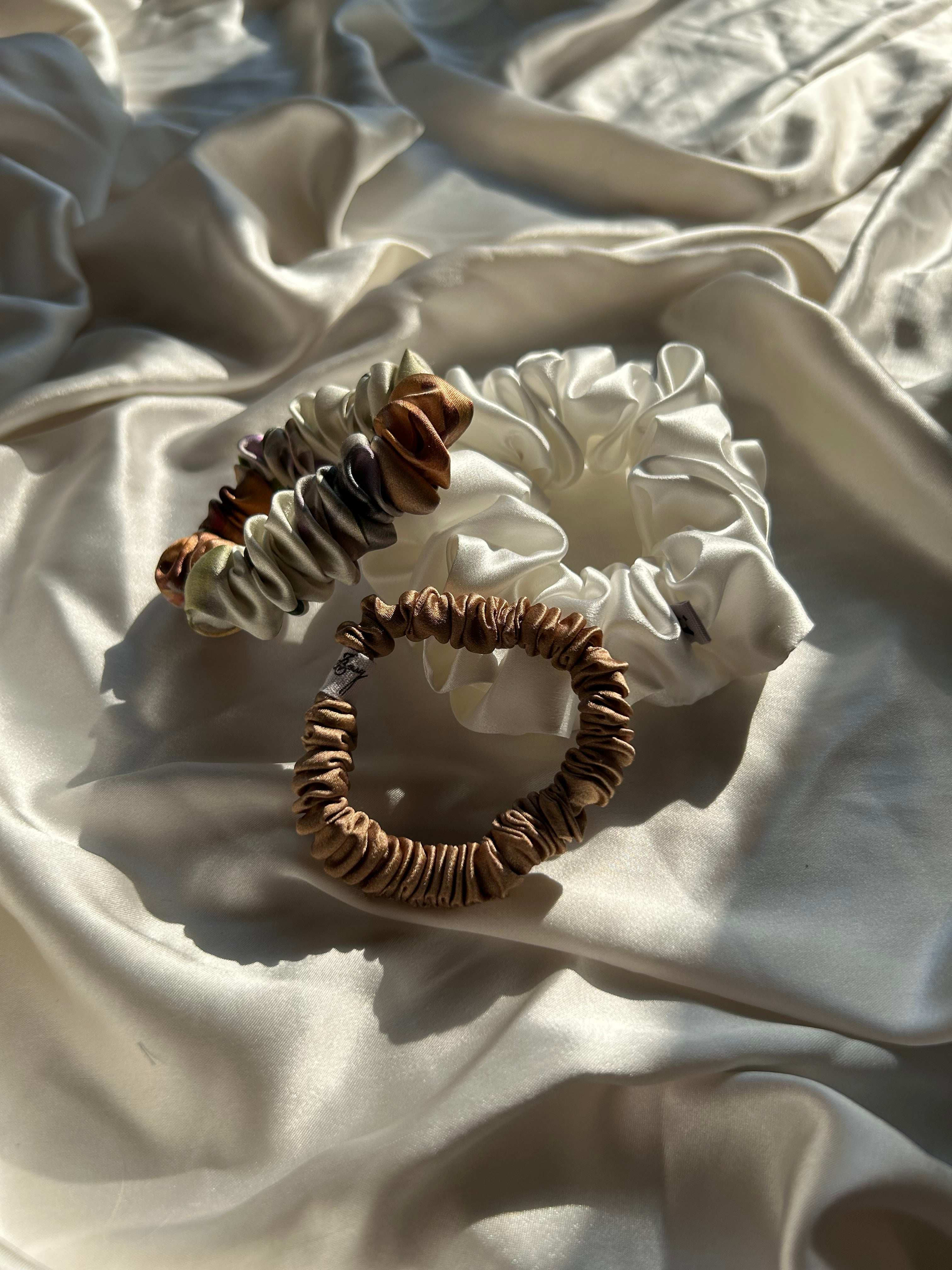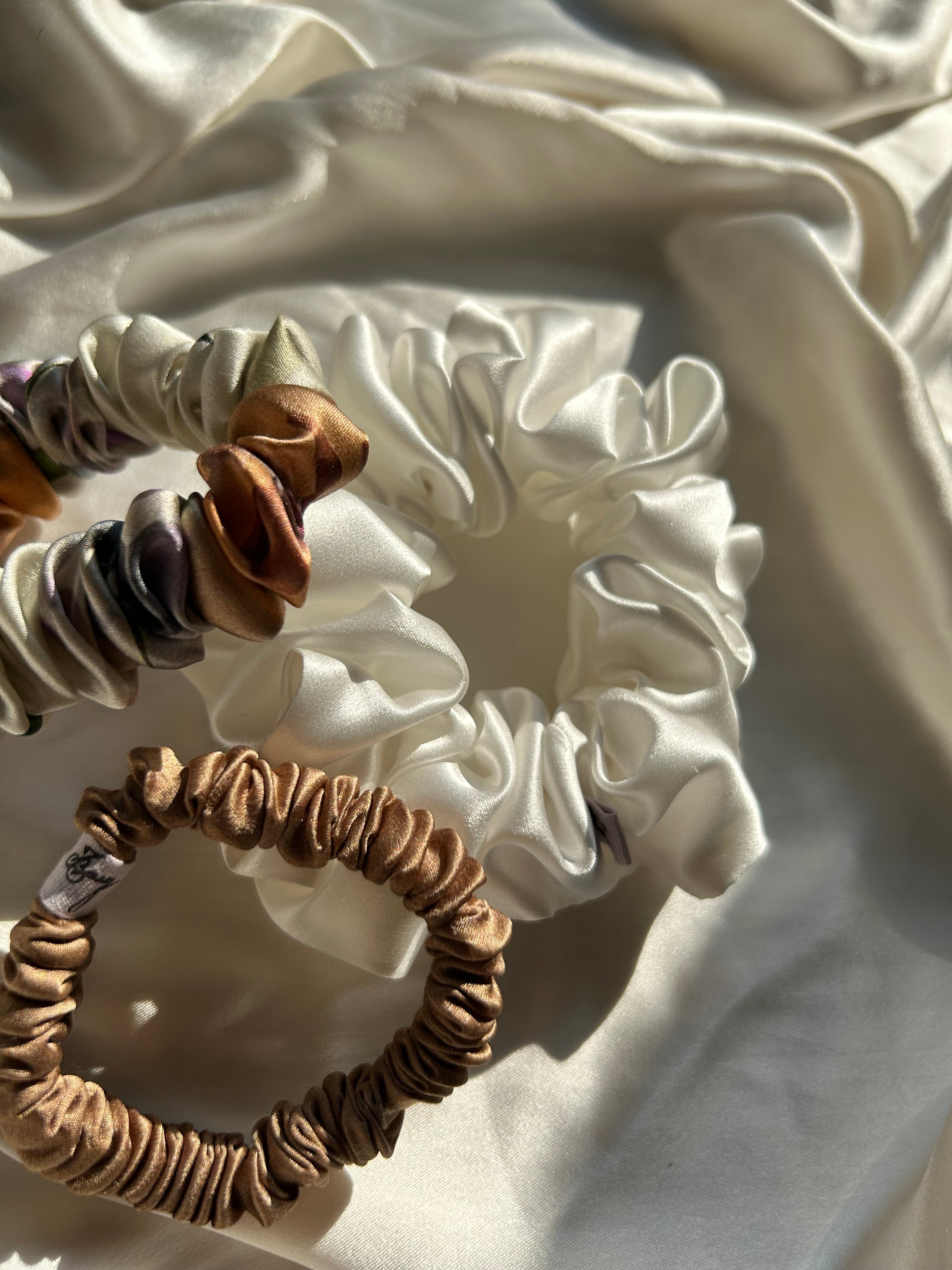 Breathtakingly soft, our silk scrunchies are beautifully gentle.