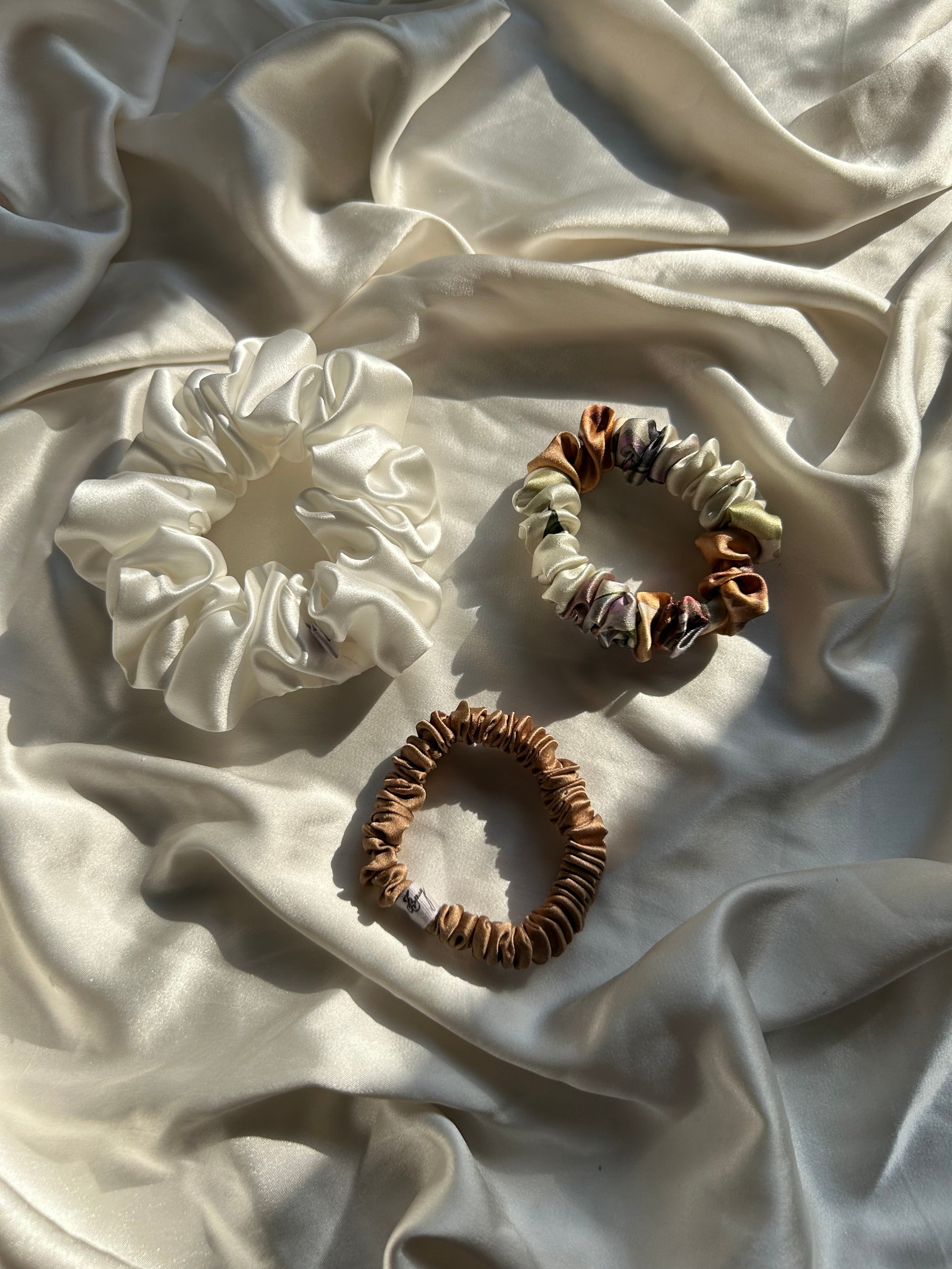 The perfect way to discover our organic silk scrunchies for the first time & to have a taste of each of our scrunchie sizes..