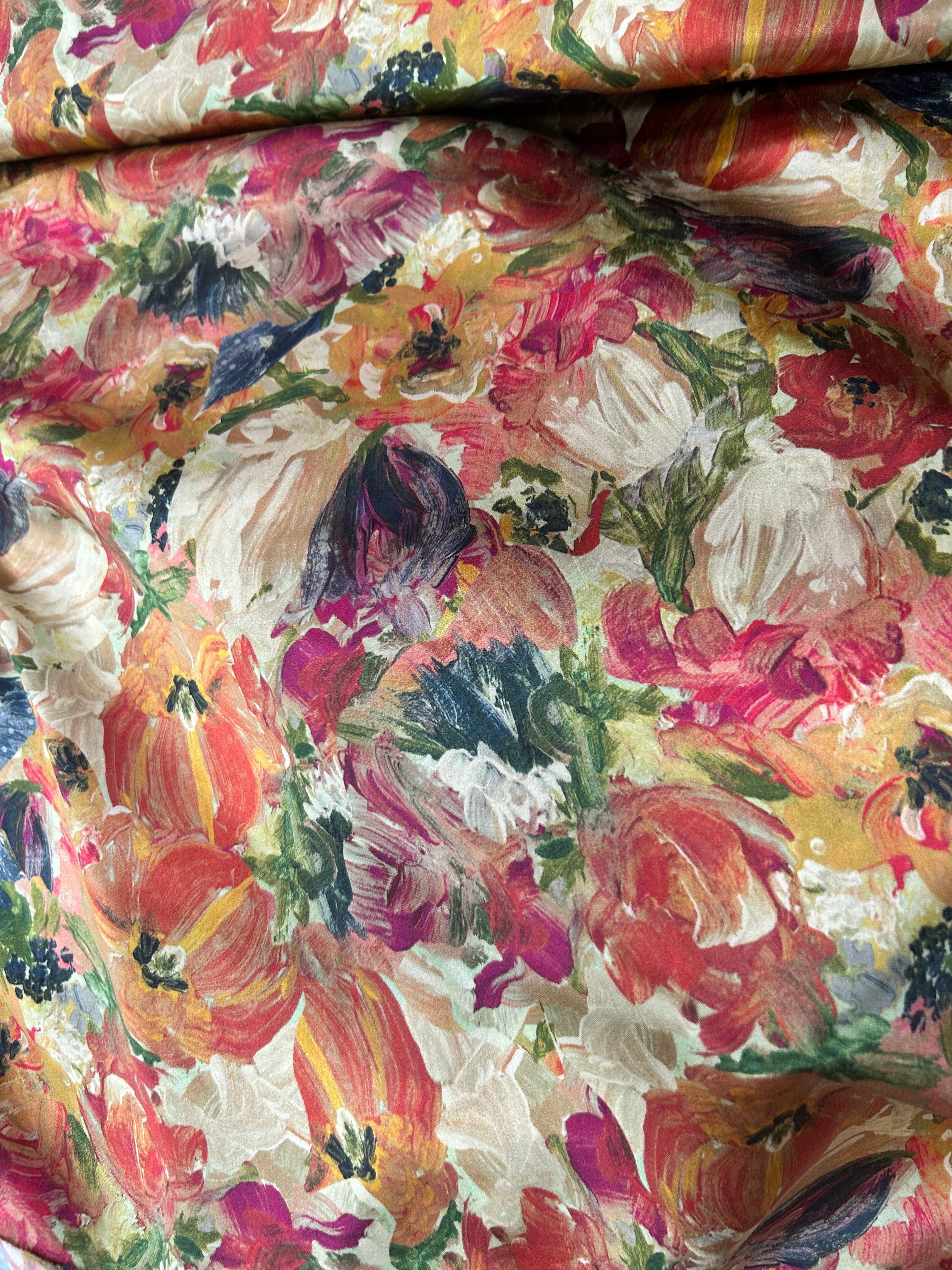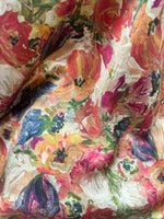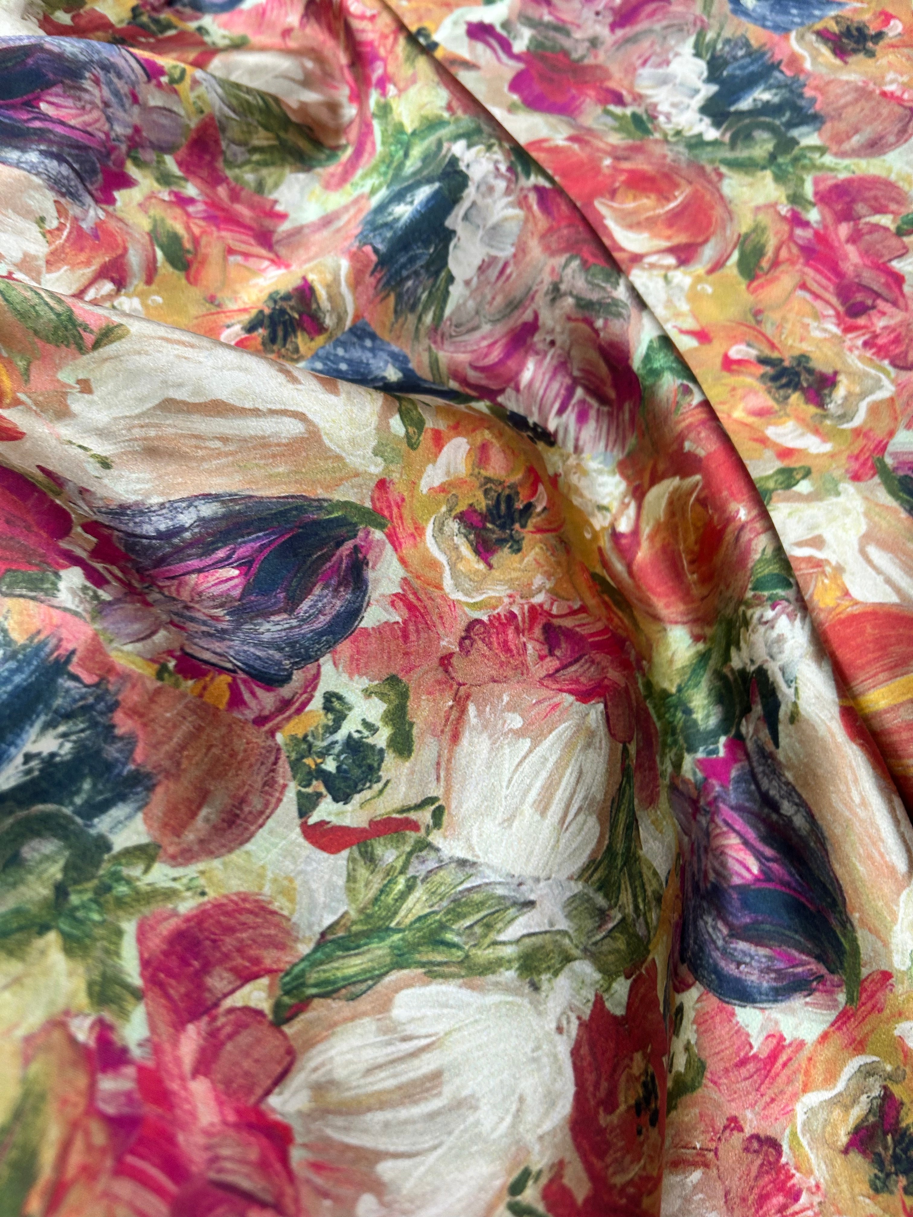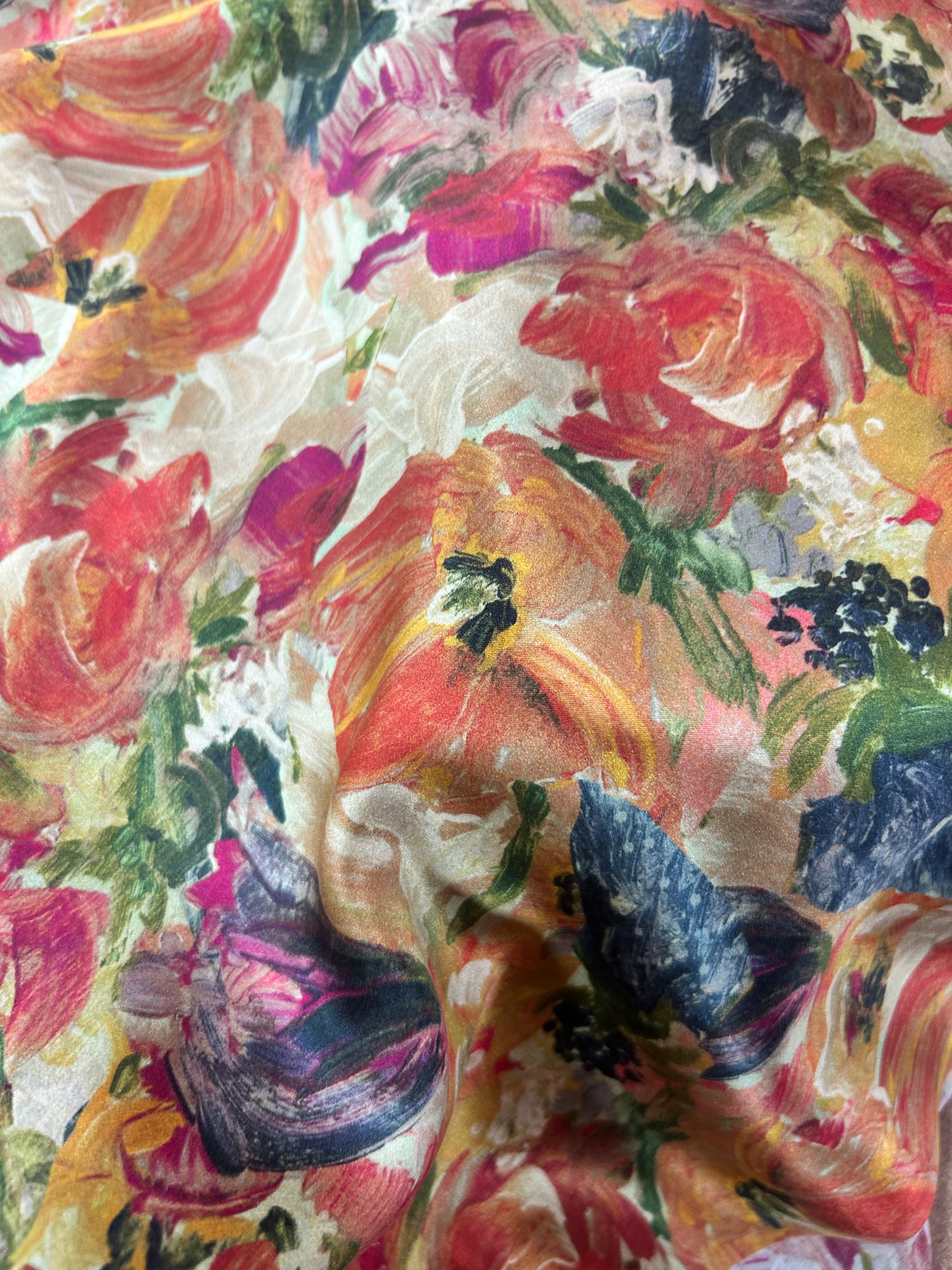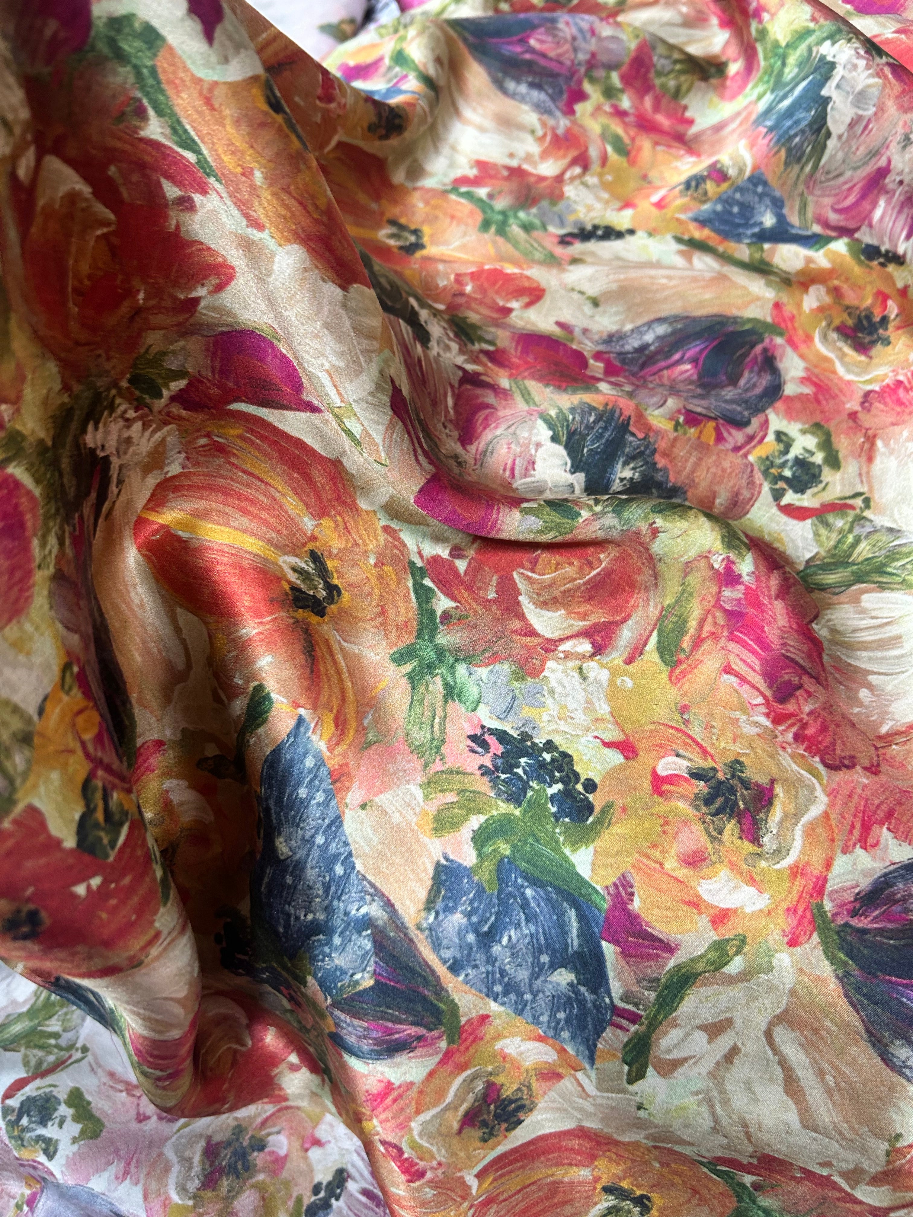 An oil study of florals, reimagined in a gossamer Ahimsa silk sheen.