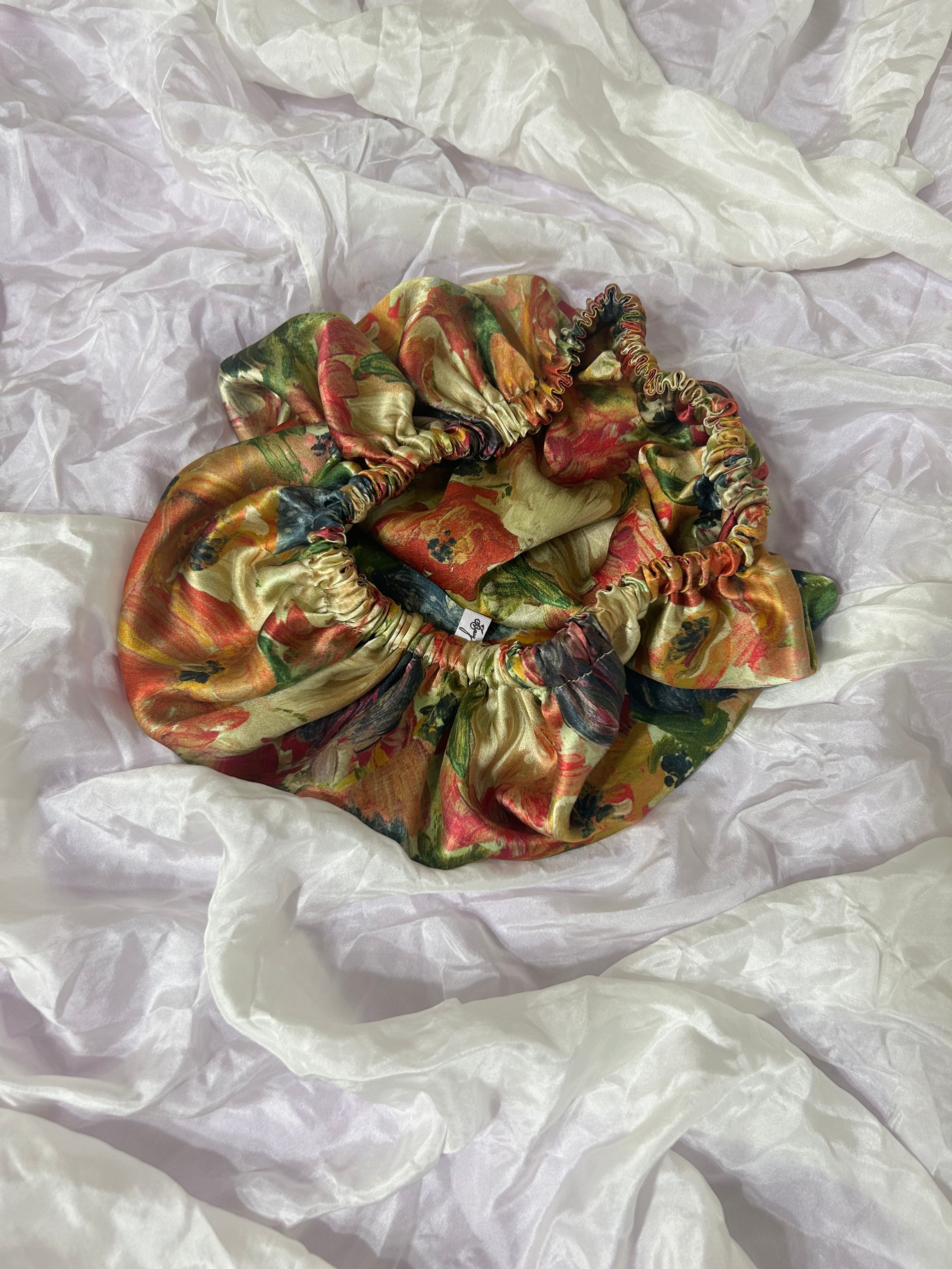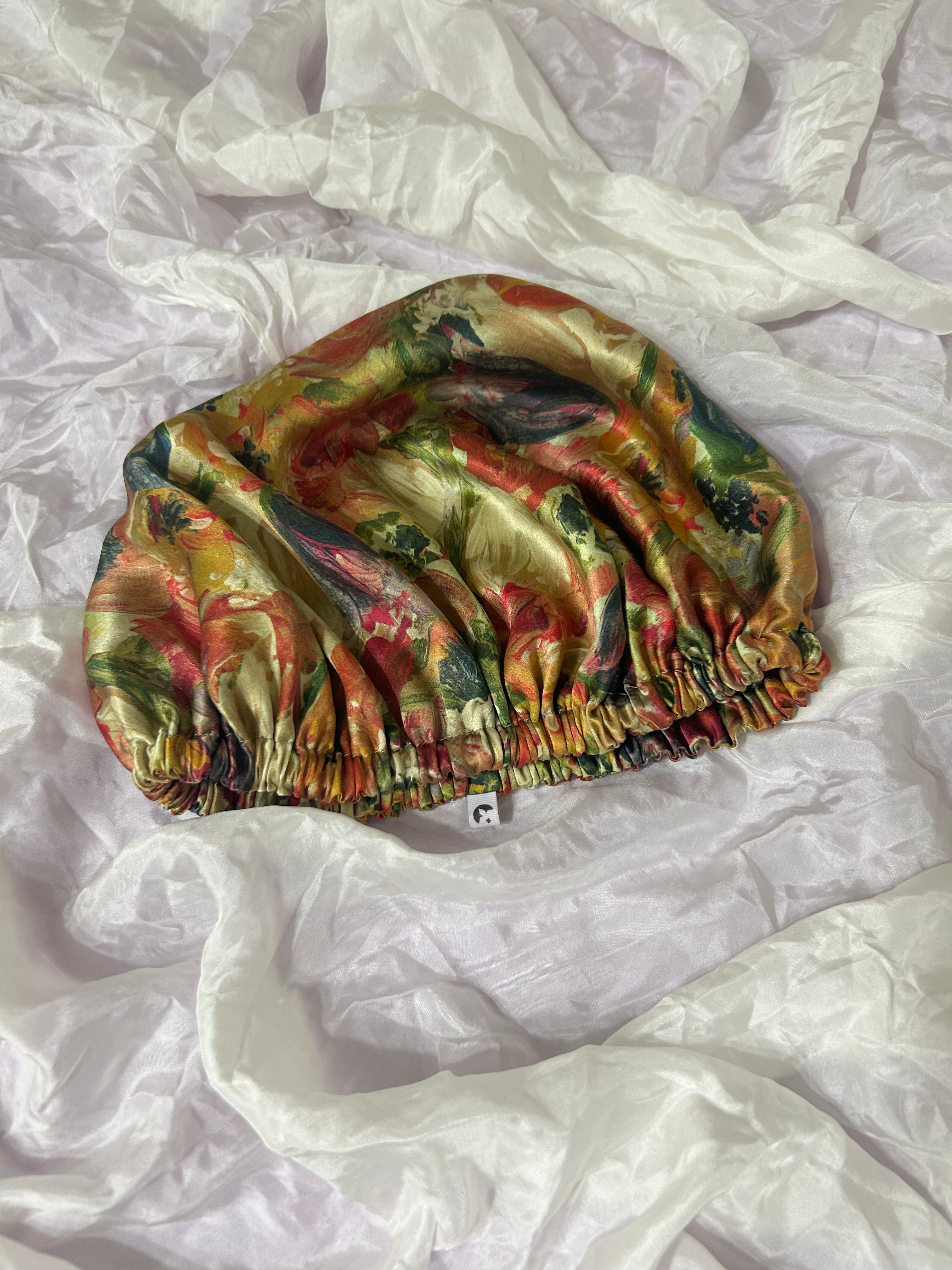 Organic Ahimsa Double Silked Hair Bonnet in Olio e Petali.